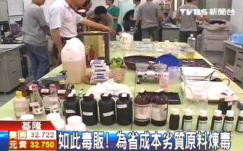 臺灣基隆市警方查獲一個制毒工廠,嫌犯利用劣質的安非他命半成品,加上多種有毒化學藥劑,提煉安非他命,牟取暴利。來源:臺灣TVBS電視臺