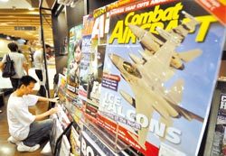 因應(yīng)軍事迷的需求,臺(tái)灣市售軍事雜志大幅增加,男性為主要的閱讀族群。圖為民眾在書(shū)店里翻閱雜志。(圖片來(lái)源:臺(tái)灣《中國(guó)時(shí)報(bào)》)