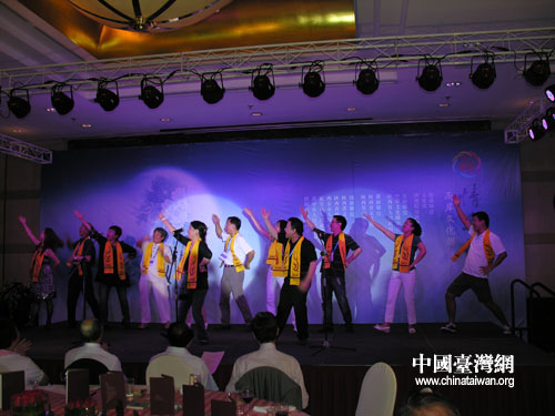 聯(lián)歡會開場節(jié)目:由曾永義教授作詞,臺灣藝術(shù)大學(xué)表演藝術(shù)學(xué)院院長施德玉作曲的《新編陜北組曲》。 (中國臺灣網(wǎng) 蕪?fù)?攝)