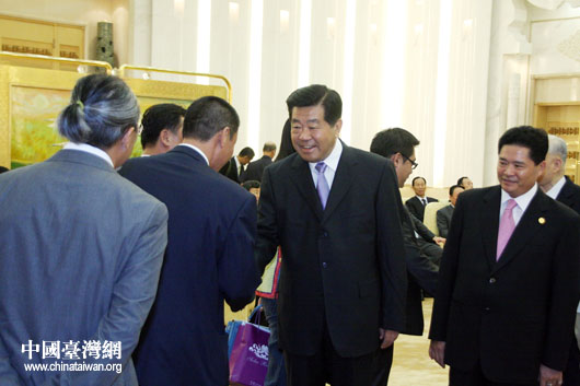7月27日下午,中共中央政治局常委、全國政協主席賈慶林在北京人民大會堂會見了以鄭銘坤先生為團長的臺灣媽祖聯誼會代表團一行 。(中國臺灣網 鐘寶華 攝)
