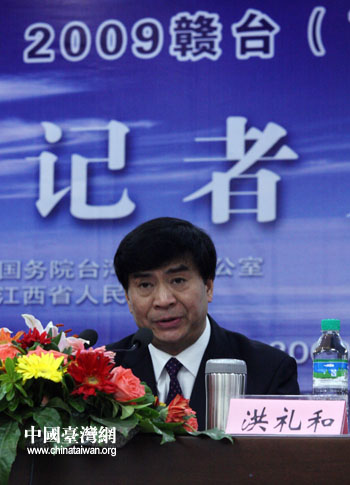 9月20日,2009贛臺(tái)經(jīng)貿(mào)合作研討會(huì)在南昌召開記者見面會(huì),江西省副省長洪禮和介紹本屆贛臺(tái)會(huì)的情況。(中國臺(tái)灣網(wǎng) 鐘寶華 攝)
