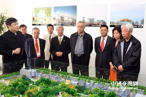 10月2日,全國臺灣研究會副會長孫曉郁(右一)、海協會副會長張銘清(右四)等有關部門負責人出席北京臺灣街“五桂樓”奠基儀式,并參觀北京臺灣街沙盤,聽取有關介紹。 (中國臺灣網 田云鵬 攝)