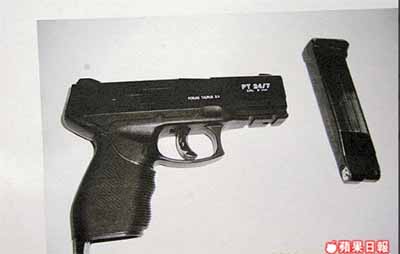 臺灣維安人員在群眾當中搜到一把玩具BB槍。 來源:臺灣《蘋果日報》