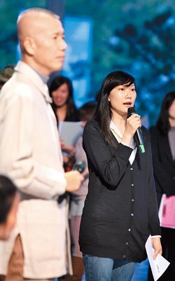 一現身就成為鎂光燈焦點,馬元中的壓力可想而知。她專注地傾聽老板蔡國強的致詞內容,以流暢的英文快速翻譯出來。馬英九女兒大秀英文,全場屏息聆聽。可能是因為緊張,不難聽出馬元中的聲音有點發抖,時而甩頭發的小動作,也透露出要在眾媒體前擔任現場翻譯員,這份差事真不容易。 致詞結束后,馬元中立刻離開,深怕如果再多待一刻,恐又搶走蔡國強的風采。(陳佳慧)
