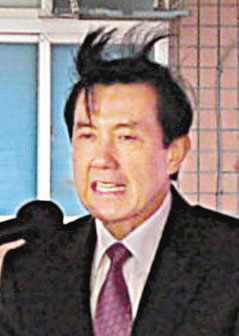 馬英九昨天參加中山高五股楊梅段動土典禮,致詞時,風(fēng)勢強勁,發(fā)型大亂。圖片來源:臺灣《聯(lián)合報》