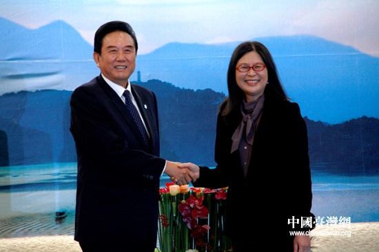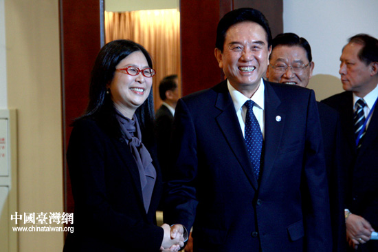 22日下午,參加兩會(huì)第四次領(lǐng)導(dǎo)人會(huì)談的海協(xié)會(huì)會(huì)長(zhǎng)陳云林與臺(tái)灣大陸事務(wù)主管部門(mén)負(fù)責(zé)人賴(lài)幸媛會(huì)面。(中國(guó)臺(tái)灣網(wǎng) 李徽 攝)