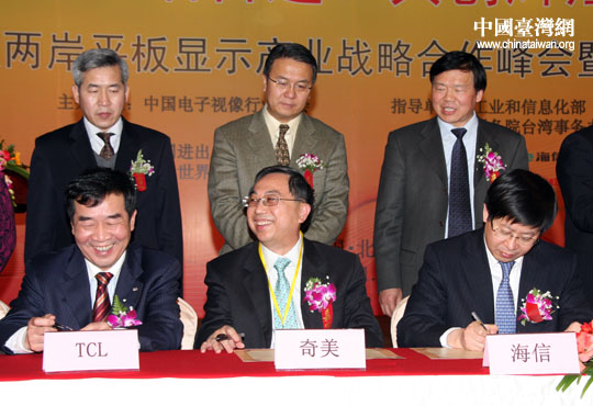 1月20日下午,海峽兩岸12家平板顯示骨干企業在北京簽署2010年戰略合作規劃。(中國臺灣網 鐘寶華 攝)