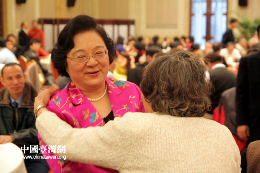 “2010年在京臺胞新春同樂會”今天下午在京舉行,圖為全國政協(xié)副主席、臺盟中央主席林文漪與老臺胞共敘鄉(xiāng)情。(中國臺灣網(wǎng) 張弛 攝)