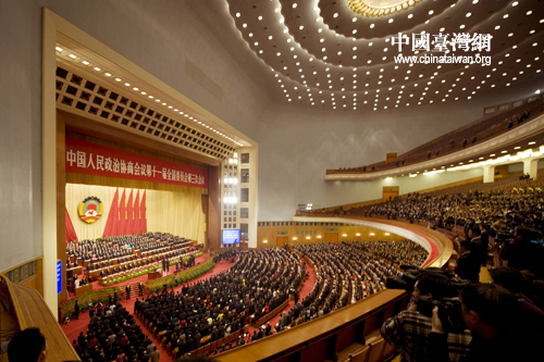 3月3日下午,全國政協十一屆三次會議在北京人民大會堂開幕,圖為開幕式現場。(中國臺灣網發 肖春陽、劉洋攝影報道)