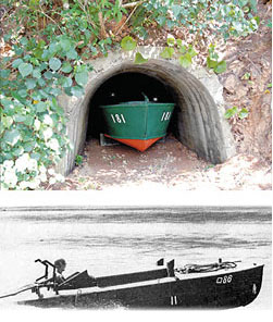 二戰(zhàn)末期,日本以高速艇組成自殺攻擊的震洋特攻隊,上圖為位于日本奄美大島中的第18震洋水上特攻隊用來藏自殺快艇的洞穴,下圖為震洋水上特攻隊快艇。 來源:臺灣《中國時報》