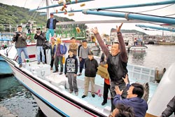 用日本巡邏艦撞沉“聯合”號海釣船賠償金加上朋友借貸,船長何鴻義打造億順168號昨首航到深澳漁港。圖為何船長撒麻糬分享迎新船重返大海的喜悅。(圖片來源:臺灣《中國時報》)