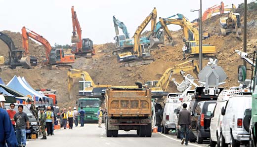 昨天是臺灣三號高速公路基隆七堵段山體滑坡后的第一個上班日,救災單位在現(xiàn)場加派機具進場,全力開挖,山頭上滿是挖土機,全力尋找任何可能的生機。