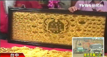 大甲媽祖鑾轎出巡期間,臺灣各地信徒簇擁膜拜,許多人還愿贈送金牌,鎮瀾宮初步估計至少收到1400多面金牌。媽祖鑾轎上方擺放著一面匾額,里面擺滿999純金的足兩金牌,最重的一塊有8兩重,市值超過35萬元。鎮瀾宮人員透露:“捐贈者是建筑業的,今年是第3年了,今年他覺得還金牌很高興,一定是有達到每個人的目標!