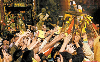 中國臺灣網4月27日消息 綜合臺灣媒體報道,臺灣臺中縣大甲鎮瀾宮媽祖340余公里繞境活動前日結束,據鎮瀾宮估計,今年參與繞境人數約120萬、香油錢約2400萬元(新臺幣 下同),金牌數更是達到1400多面,創下新高。