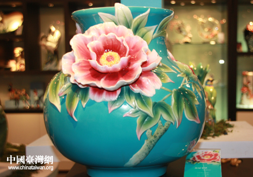圖為第三屆海峽兩岸文博會臺灣文創展區展出的法藍瓷花瓶。(中國臺灣網 高斯斯 攝)