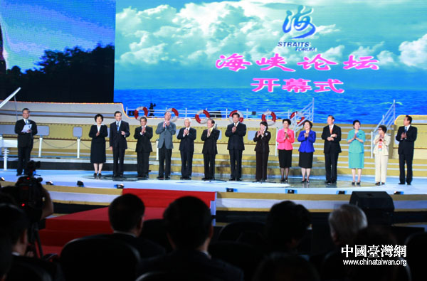 中國臺灣網6月20日消息 第二屆海峽論壇19日晚在福建廈門開幕。中共中央政治局常委、全國政協主席賈慶林,中共中央臺灣工作辦公室、國院臺灣事務辦公室主任王毅,海峽兩岸關系協會會長陳云林,中國國民黨副主席、嘉義市市長黃敏惠,新黨主席郁慕明,親民黨主席秦金生,臺灣無黨團結聯盟主席林炳坤等政要出席開幕式。(記者 鐘寶華)