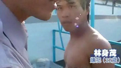 林身茂(右)體力耗盡,只能乖乖上岸,遭警方扭送法辦。圖片來(lái)源:臺(tái)灣《蘋(píng)果日?qǐng)?bào)》
