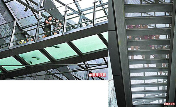透光的樓梯、空中走廊讓女士們頗為憂心。圖片來源:臺灣《蘋果日報》