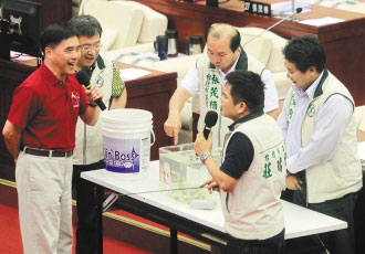 臺北市綠營議員昨請來章魚預測臺北市長當選人,莊瑞雄以細棍戳弄遭批虐待。圖片來源:臺灣《聯合報》