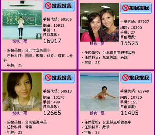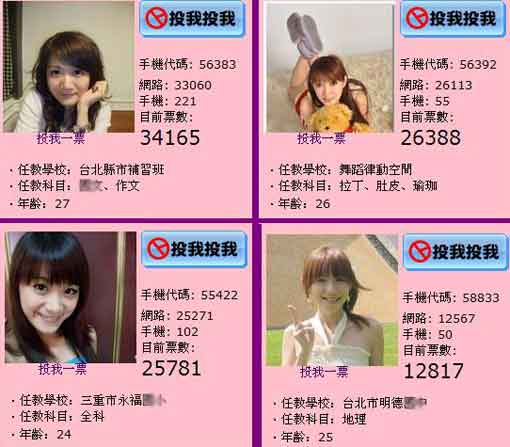 中國(guó)臺(tái)灣網(wǎng)9月27日消息 據(jù)臺(tái)灣媒體報(bào)道,島內(nèi)社交網(wǎng)站地圖日記舉辦“超人氣美女老師”網(wǎng)絡(luò)票選活動(dòng),三周吸引超過(guò)50名教師上網(wǎng)報(bào)名,逾20萬(wàn)人次點(diǎn)閱。至昨天為止,27歲的舞蹈教師李依文暫居第一,有網(wǎng)友留言,有如此吸引力的老師,應(yīng)沒(méi)有學(xué)生上課會(huì)打瞌睡。