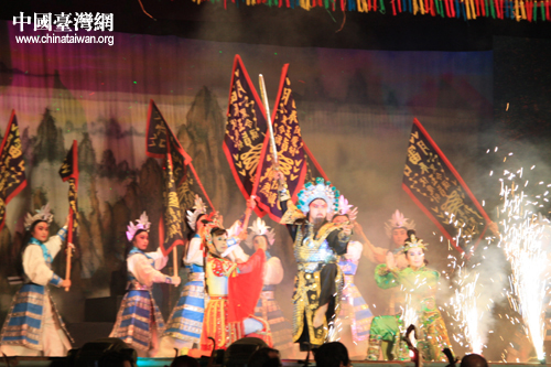 臺灣明華園黃字劇團與漳州市薌劇團同臺獻演大型歌仔戲《周公法斗桃花女》。(中國臺灣網 胡珊珊 攝影)