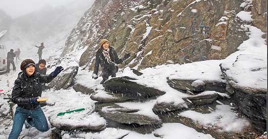 合歡山昨天下午飄下瑞雪,山頭染上銀白粉妝,賞雪民眾興奮地打起雪仗。圖片來(lái)自網(wǎng)絡(luò)