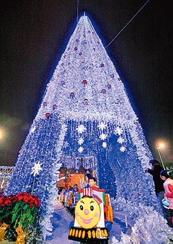 耶樹樂園 臺中市豎立在新市政中心的圣誕樹,可讓圣誕列車快樂行駛,變成小朋友的快樂天堂。圖片來源:臺灣《中國時報》