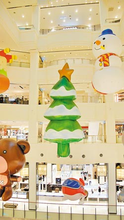 魔幻飄浮 桃園縣臺茂購物中心運(yùn)用中央?yún)^(qū)挑空9層樓高,斥資200萬新臺幣訂制圣誕樹與小熊、雪人等巨型氣球,創(chuàng)造出飄浮在空中的效果。圖片來源:臺灣《中國時報(bào)》