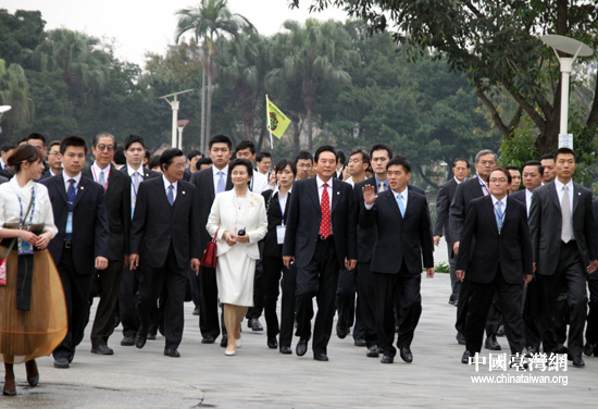 陳云林及夫人一行不到8點(diǎn)就來到花博會(huì),趕在對外開放前進(jìn)入園區(qū),以盡可能減少對市民正常參觀的影響。在海基會(huì)董事長江丙坤及臺北市市長郝龍斌陪同下,陳云林伉儷參觀了爭艷館、西安園等景點(diǎn)。