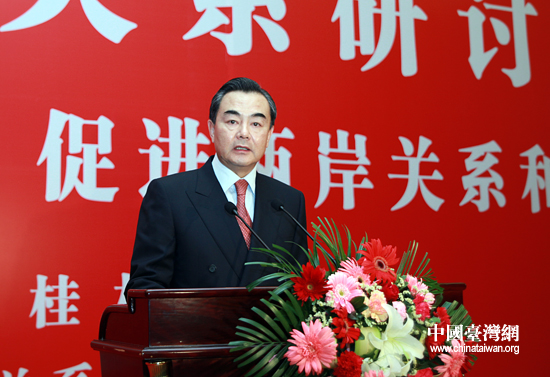 中共中央臺辦主任王毅在第九屆兩岸關(guān)系研討會上致辭。(中國臺灣網(wǎng) 鐘寶華 攝)