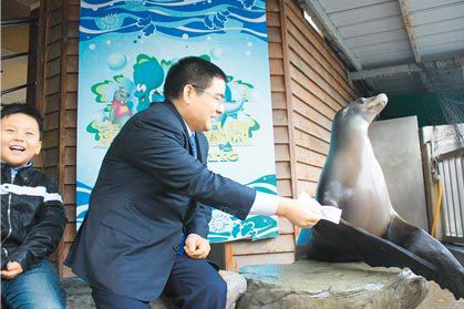陳光標看動物表演習慣性發紅包 海獅不領情(圖)
