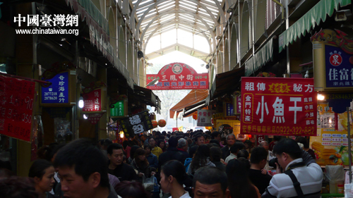 中國臺灣網2月4日高雄消息 每到農歷年底采買年貨之時,在臺北的人們總會想到迪化街,而高雄也有著從日據時代就集合南北雜貨販賣商的三鳳中街。每年從過年前一個月至除夕夜是這條街最熱鬧的時期,人潮擁擠、水泄不通,此時也是各家媒體采訪的焦點,因此也有“北迪化,南中街”的稱號。