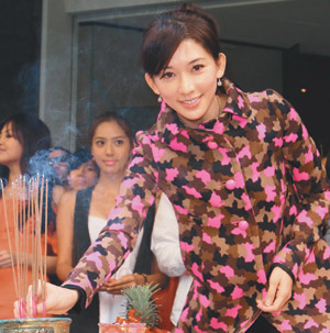 臺灣模特公司凱渥上午舉行開工團拜,林志玲特地出席開工儀式。圖片來源:臺灣《聯合報》