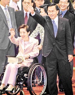 告別錦衣玉食。陳水扁妻子吳淑珍出席重要場合非常鐘情這襲粉紅長褲套裝,前幾天還向親近友人說:“哪一天我‘回家’了,一定要讓我再穿一次……”圖片來源:臺灣《中國時報(bào)》