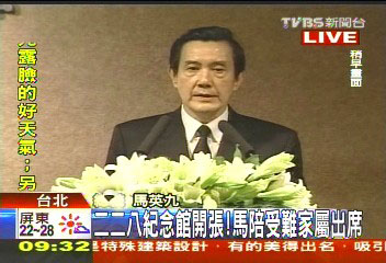 在臺灣二二八紀念館開館的儀式上,馬英九表情肅穆。圖片來源:臺灣TVBS電視臺
