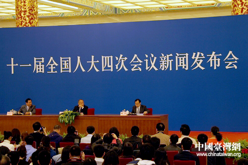 十一屆全國人大四次會議于3月4日(星期五)上午11時在人民大會堂三層金色大廳舉行新聞發(fā)布會,圖為新聞發(fā)布會現(xiàn)場。(中國臺灣網(wǎng) 王偉 攝)