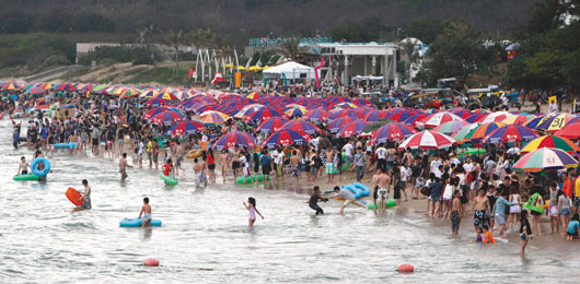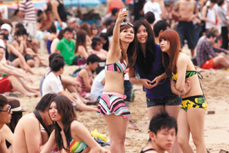 報道指出,一年一度為期4天的墾丁春天音樂季昨天邁入最高潮,10萬人涌入墾丁,到處是車潮人潮,車陣從墾丁大街一路回堵數(shù)公里遠,知名的南灣、墾丁大街上盡是穿著清涼的比基尼辣妹,白天在海灘戲水,入夜則隨著搖滾、重金屬音樂扭臀款擺,狂歡的氣氛從早上延續(xù)到深夜,帥哥靚女都想在墾丁為自己留住青春美好回憶。(中國臺灣網(wǎng) 劉海偉)