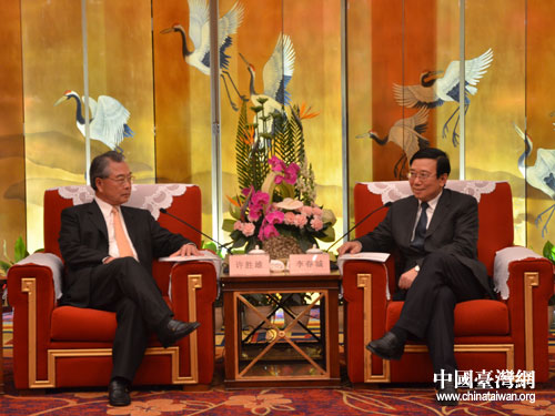 中國臺灣網(wǎng)4月14日成都消息 日前,以海峽兩岸經(jīng)貿(mào)文化交流協(xié)會會長、財團法人海峽交流基金會副董事長、臺灣金仁寶集團董事長許勝雄先生為團長的海峽兩岸經(jīng)貿(mào)文化交流協(xié)會參訪團一行參訪了成都。4月13日,中共四川省委常委、成都市委書記李春城,成都市長葛紅林在成都會見了參訪團全體成員。雙方就蓉臺電子信息產(chǎn)業(yè)發(fā)展的最新情況、仁寶成都項目建設(shè)進展情況等廣泛交換了意見。