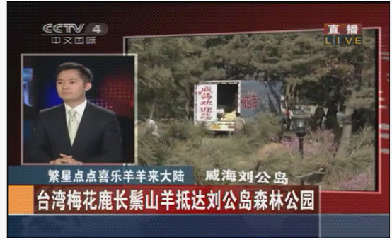 臺贈大陸長鬃山羊梅花鹿抵達威海劉公島國家深林公園。圖片來源:中央電視臺