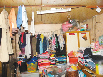 彭克勇夫婦與8個孩子住在不到十坪的房子里,堆滿孩子衣物。圖片來源:臺灣《聯(lián)合報》