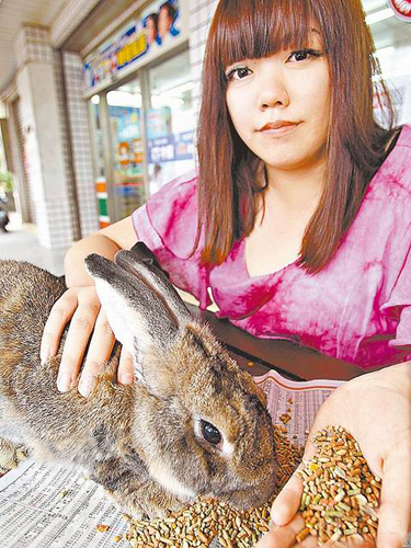 女網友凱力分享前男友“爛軟人”學狗、吃兔飼料故事暴紅。圖為凱力與愛兔噗噗。圖片來源:臺灣媒體
