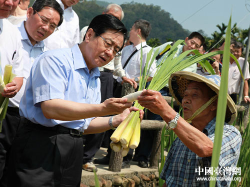 中國臺灣網5月31日南投消息 30日上午,中共浙江省委書記趙洪祝、省委秘書長李強等來到南投縣埔里鎮向善里蔬菜產銷班第七班,與南投埔里鎮蔬菜產銷班農民做交流。