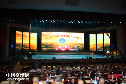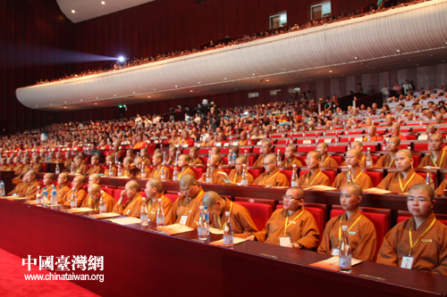“第三屆海峽論壇·閩臺(tái)佛教文化交流活動(dòng)周”9日晚間在福州開(kāi)幕,閩臺(tái)兩地的諸山長(zhǎng)老、大德,以及國(guó)家宗教局、福建省、福州市有關(guān)領(lǐng)導(dǎo),與兩岸千余名僧眾一同參加了當(dāng)晚舉行的開(kāi)幕式。(中國(guó)臺(tái)灣網(wǎng) 楊麗 攝)
