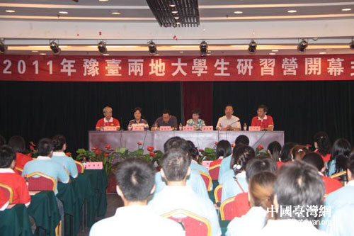 中國臺灣網7月15日鄭州消息 7月15日,由河南省臺辦、省臺聯主辦,以“走進天地之中、探尋‘四大古都’”為主題的2011年豫臺兩地大學生研習營在鄭州舉行開營儀式。河南省臺辦主任宋麗萍宣布“2011年豫臺兩地大學生研習營正式開營”并向營員授營旗。來自臺灣長榮大學、嘉義大學和華北水利水電學院的師生百余人參加開營儀式。