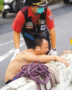 林俊宏當場痛哭并幾度要沖入水中尋找父親,被消防人員勸止。 來源:臺灣《聯合報》