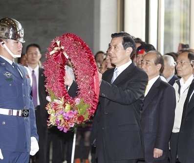 馬英九向孫中山銅像獻花致敬。(圖片來自網絡)