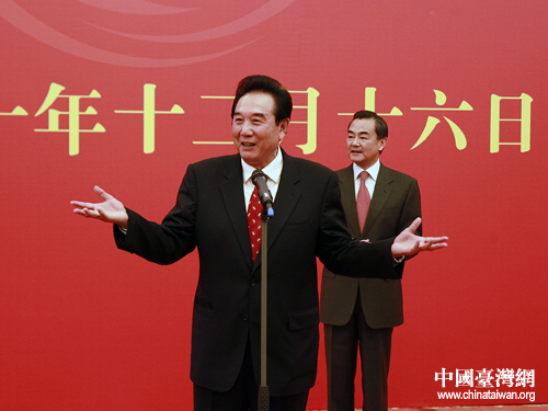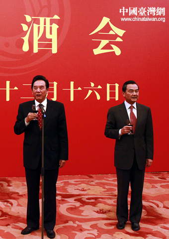 12月16日,紀念海峽兩岸關系協會成立20周年招待酒會在北京人民大會堂舉行。圖為海協會會長陳云林(左)在招待酒會上致祝酒詞。(中國臺灣網 王偉 攝)