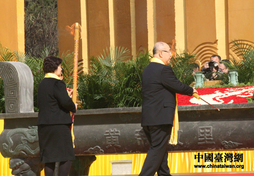 壬辰年黃帝故里拜祖大典于3月24日上午在河南新鄭市隆重舉行,圖為中國國民黨榮譽(yù)主席吳伯雄偕同夫人戴美玉正在進(jìn)行凈手上香。(中國臺(tái)灣網(wǎng) 王文英 攝)