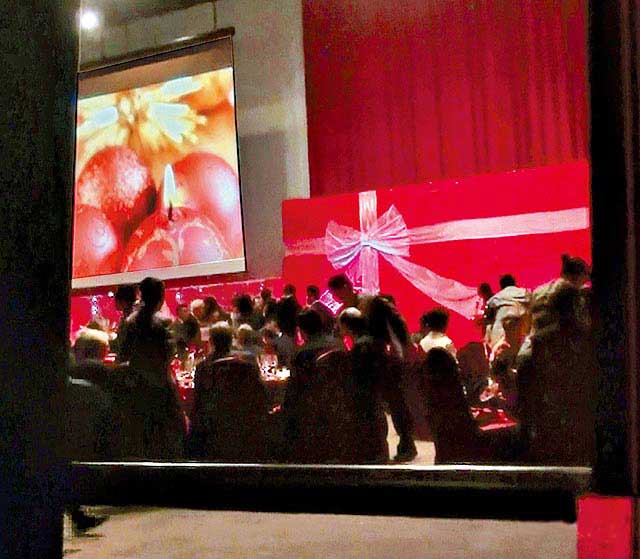 會場布置喜氣洋洋,還綁上粉紅色緞帶裝飾。圖片來自臺媒