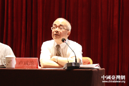 《臺灣會館與同鄉會》一書主編、北京市臺聯名譽會長盧咸池在會上對新書做了詳細介紹。(中國臺灣網 郭慶娜 攝)